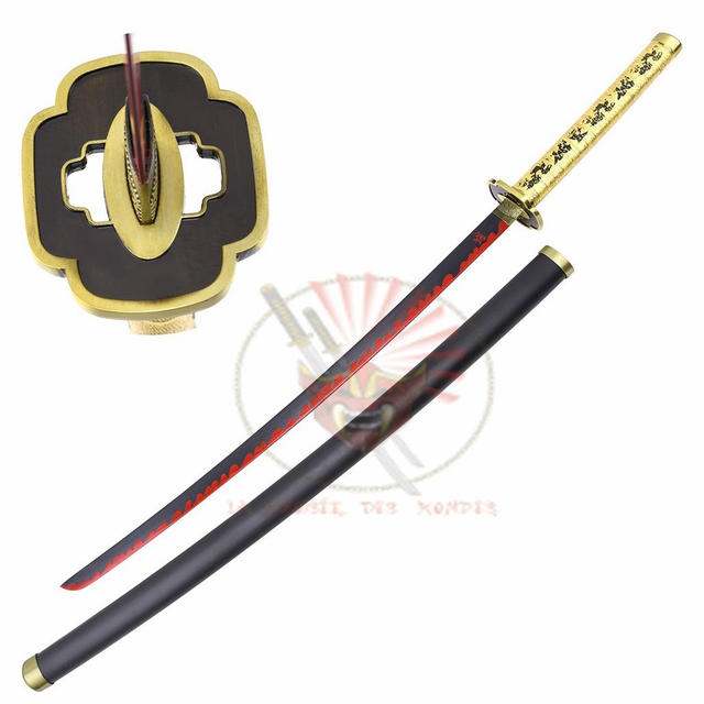 Magnifique replique du sabre de yoshiiro tiré du manga Kimetsu No Yaiba. La lame decoré est en acier stainless 440 inoxydable. La garde est en acier décoré. Manche en bois tressé de coton blanc. Longueur totale : 104cm Longueur de la lame : 69cm Poids epee et fourreau : 950grs Poids epee : 715grs